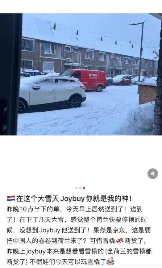 众位正在荷兰的华人网友体现,寒潮驾临当天,荷兰天下交通停摆的情景下,本人通过 Joybuy 下单的商品乃至正在第二天一早提前投递。