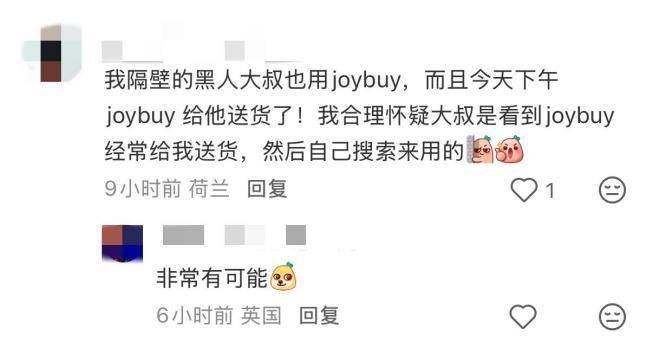 再有网友觉察,由于本人常常领受Joybuy的包裹,公然暗暗影响了隔邻邻人大叔,本人搜刮也成为了Joybuy用户。